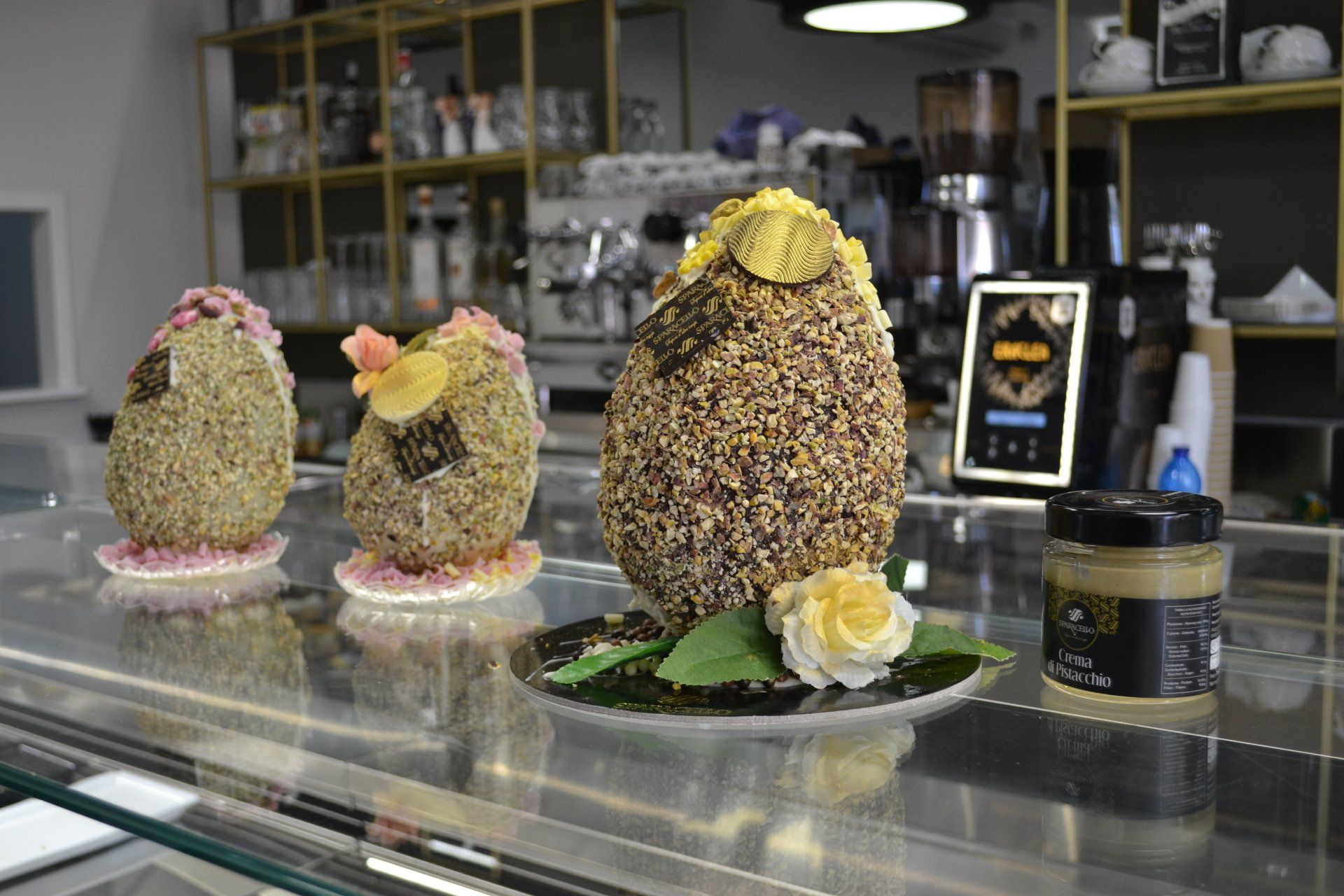 I prodotti i che proponiamo vengono realizzati con impasti a lievitazione naturale, e sono disponibili con glasse di vari gusti, tra cui pistacchio e cioccolato (con vasetto di crema dei suddetti gusti).